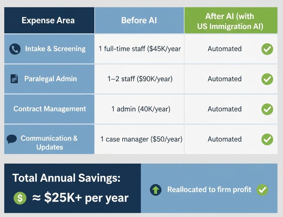 With platforms like US Immigration AI, immigration firms can now operate at a fraction of traditional costs—while delivering superior service and results.