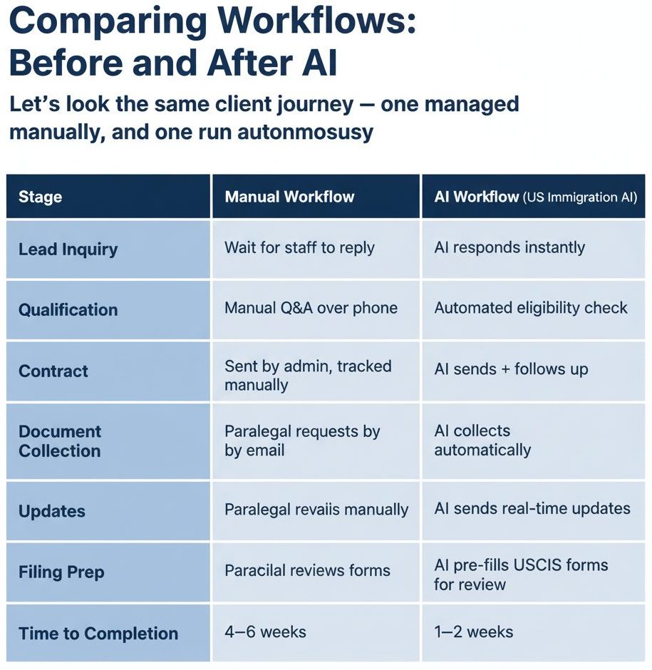 That’s the model driving the next generation of firms — powered by US Immigration AI, which replaces: